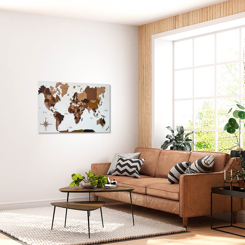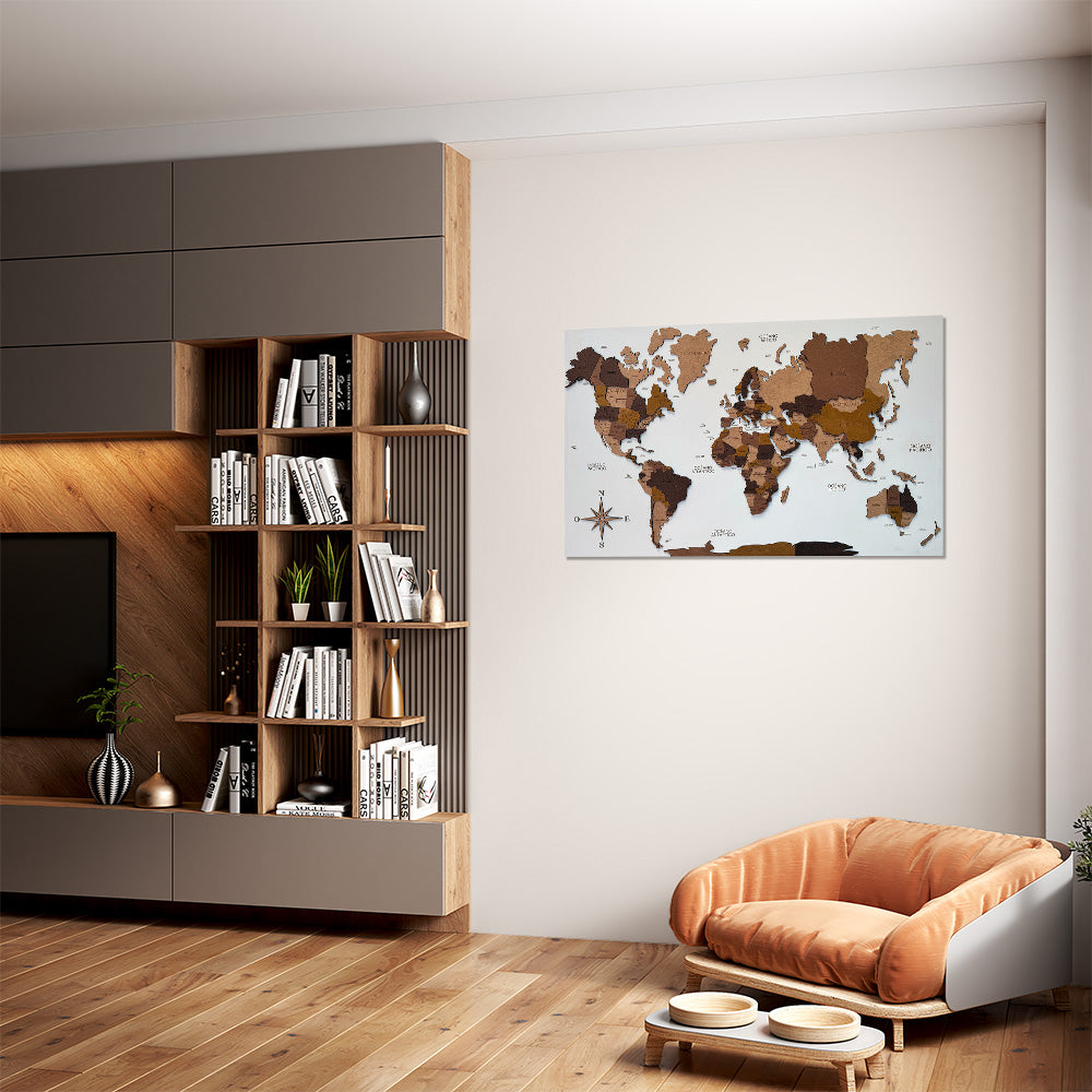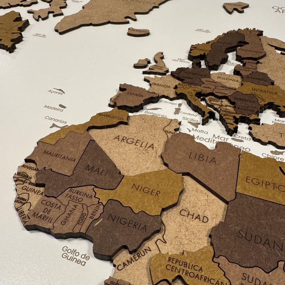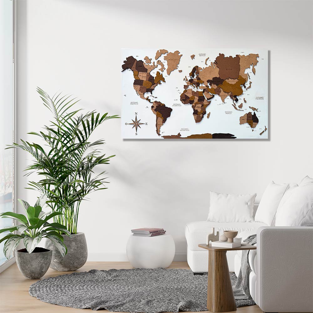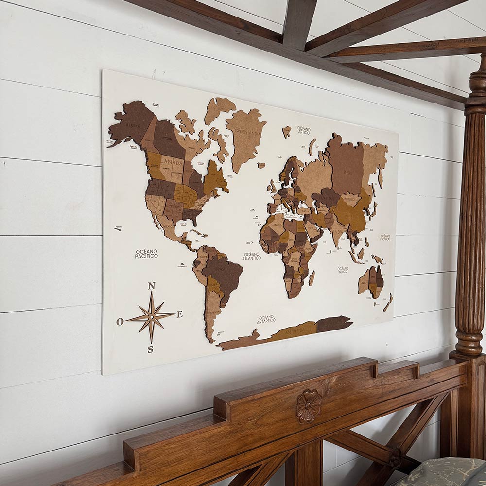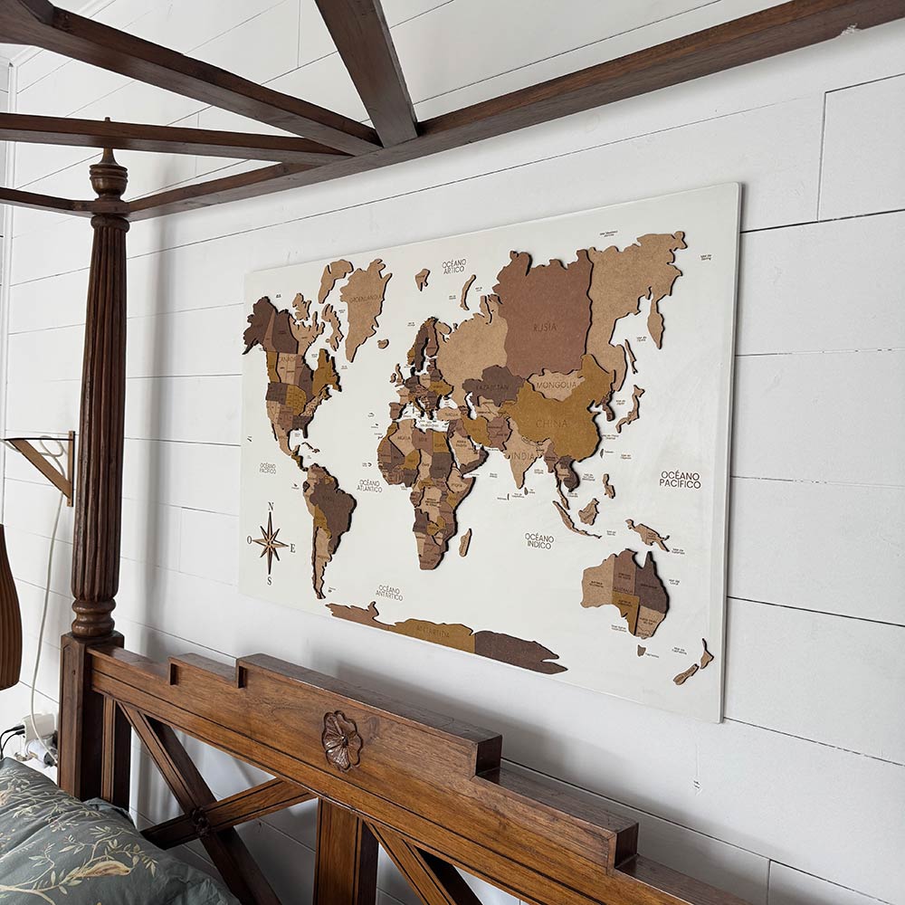 Panel blanco mapamundi 3D multicolor de madera