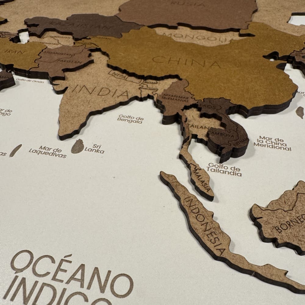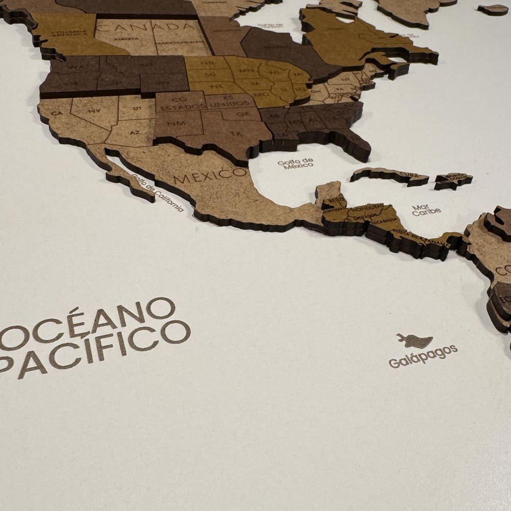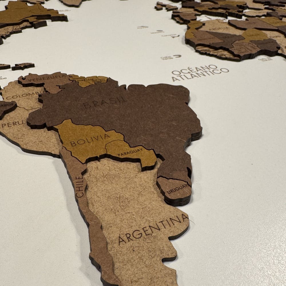 Mapa hecho en 2 capa de madera MDF sobre una base de madera contrachapada.